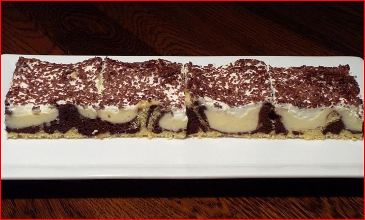 Na vymaz. a vysyp.plech kokosem nalijeme světlé pak tmavé těsto.